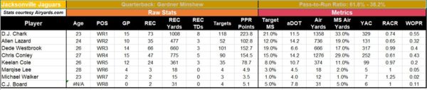 Jacksonville Jaguars: The Jaguars are a mess. The Nick Foles experiment started quick and ended even quicker. The Jags are presumably turning the keys over to Gardner Minshew, or could bring in a quarterback like Jordan Love with their pick in the draft. In relief of Foles, Minshew’s 91.2 passer rating ranked 16th, but the Jags finished as the 26th ranked offense. However, they did pass with the ninth highest frequency, giving some hope for their WR corps. That core group is headed up by D.J. Chark, Dede Westbrook, and Chris Conley. These three combined to account for 52% of the team’s targets. The only other wide receiver to reach double digit targets was Keelan Cole. The Jags decided not to chase any receivers in free agency, instead bringing in Tyler Eifert. If Eifert can stay healthy, he will vulture some targets from all three of the starting receivers, but don’t expect anyone else to in 2019. Westbrook and Conley will both be free agents after this year, so there is some stash viability for another receiver here, but don’t expect much of an immediate return barring injury.