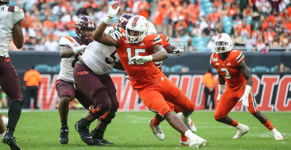 Gregory Rousseau is a part of the enormous list of players that hurt their draft stock by opting out. Ja’Marr Chase and Micah Parsons were the only two players whose opt-outs didn’t affect their draft capital. Unfortunately, our man Gregory Rousseau made a bad decision. Your author wrote about this back in September in the weekly seasonal “Draft Stock Watch” series. There is no arguing Rousseau’s superior athletic ability and speed around the edge. The DE out of Miami trailed only 2020 number two overall pick Chase Young in total sacks in the entire FBS in 2019.