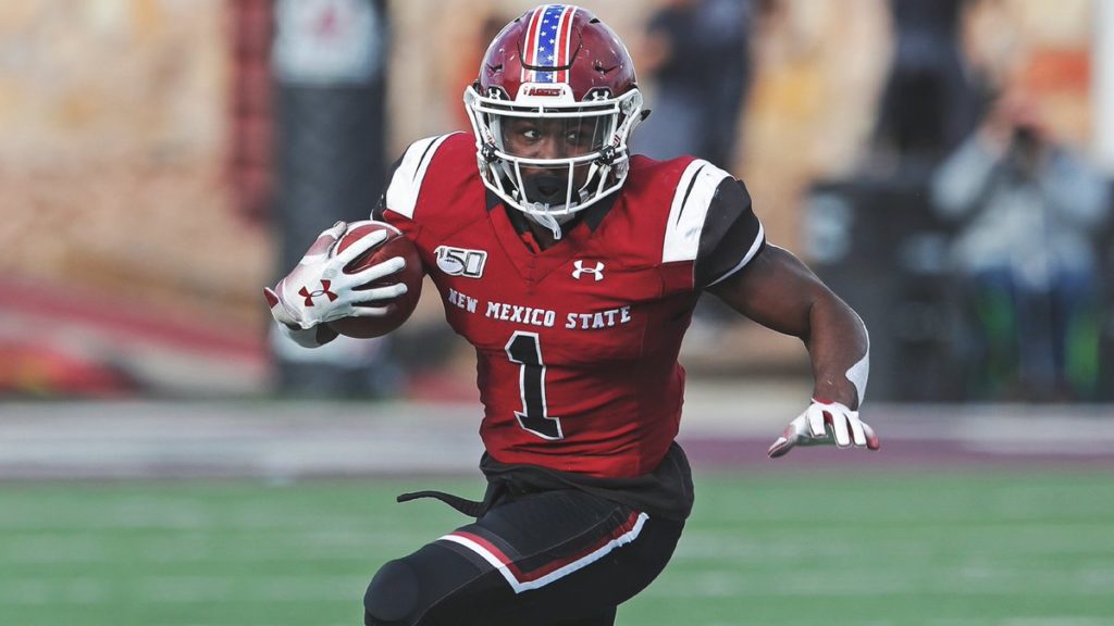 Jason Huntley, New Mexico State Player was taken at Pick